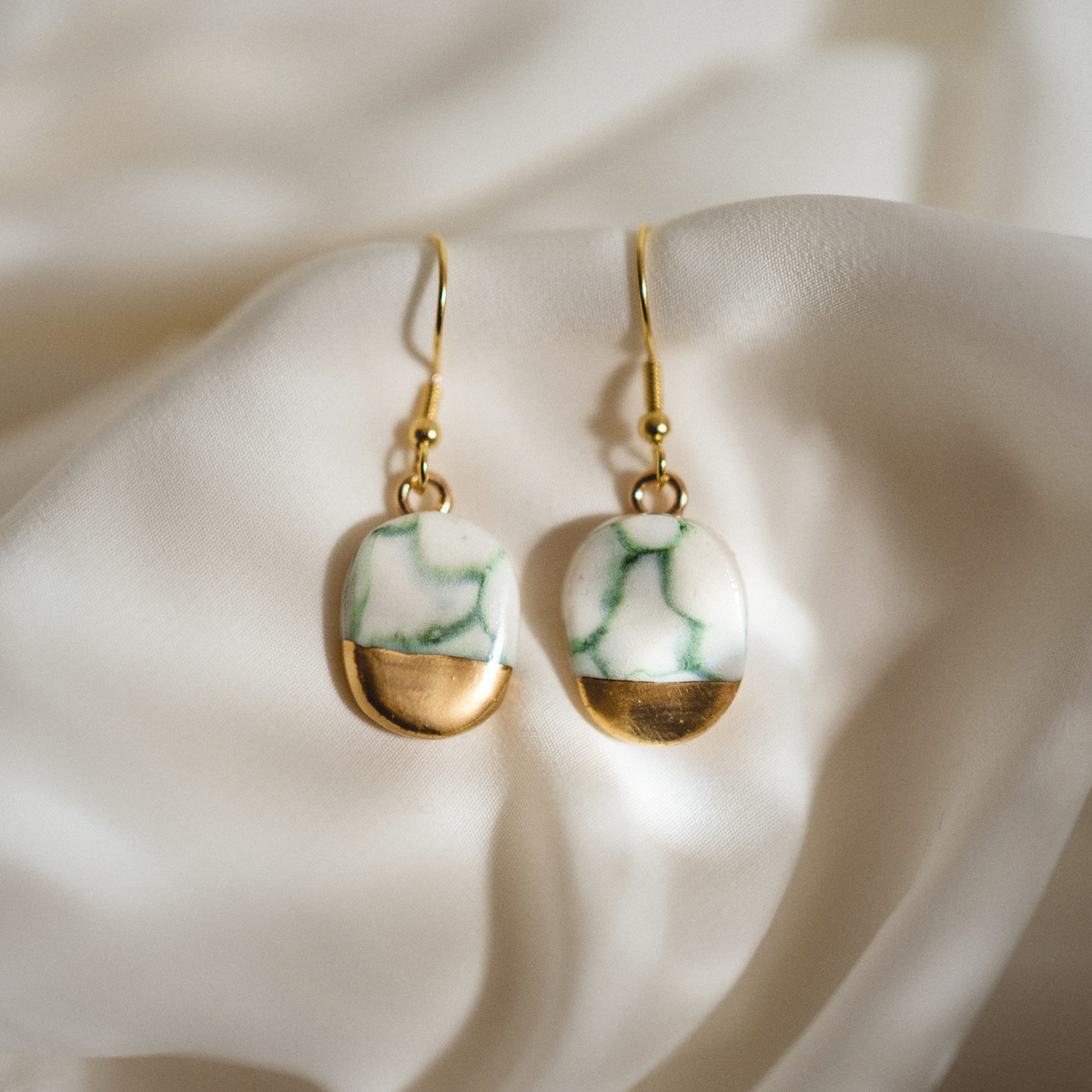 Daneben produzieren wir Gebrauchskeramik, Lampen, und auch Porzellan-Schmuck mit Goldauflage.
